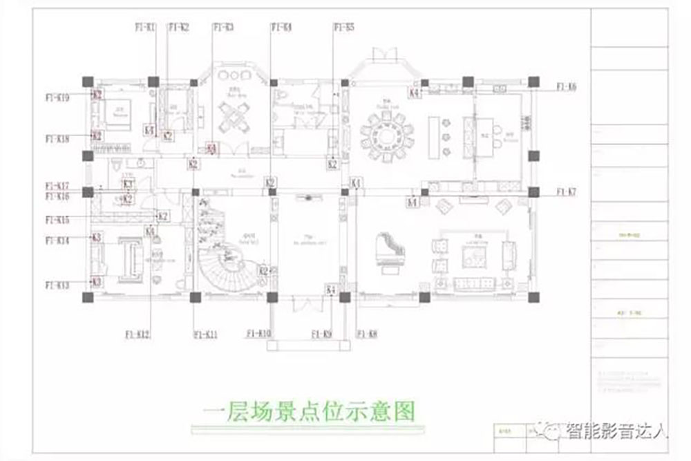点位图----几种家居智能化设备的简单堆砌是不能称为智能家居系统的;只有当具有某种功能的设备根据一个统一的标准和协议紧密地结合为一个完整的系统时,才能成其为智能家居系统。而想要实现这一切,你必须拥有极高的专业度。特此附上点位示意图,不是要证明我们有多么强大,只是想告诉每一位,我们是在用心服务客户!