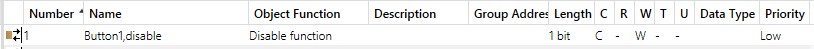该通讯对象用于关闭按键功能,当收到 “1” 时将禁止按键该按键的功能,当收到 “0” 时按键功能使能。上电时默认按键功能使能。 |