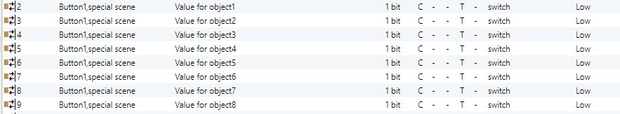 这里的 8 个通讯 对象,可一次发送 8 个数据到总线上。数值范围由数据类型决定,通讯对象的数据类型不同,可输入的对象值范围也不同。数据类型由参数 “object type” 决定。 |