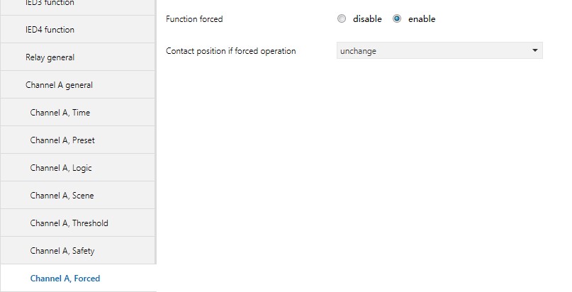 每路的 “forcedoperation” 是由通讯对象 “Forced output” 激活的。“forced operation”在某些特殊情况下被用到,例如发生紧急情况。 “forcedoperation” 的优先级在系统中最高,即当激活 “forced operation” 时,除了 “forced operation” 的其他动作将被忽略。