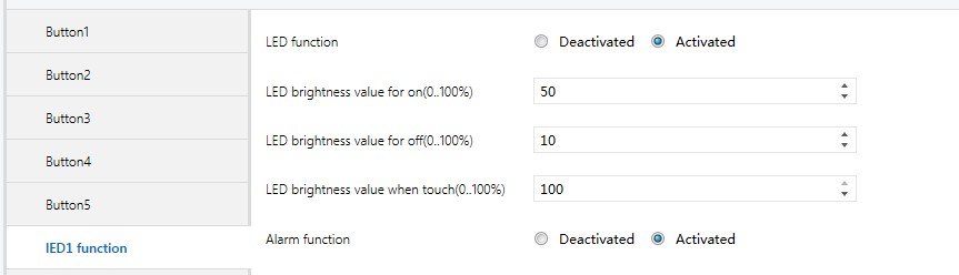 参数“ LED brightness value for on(0..100%) ”, “LED brightness value for off(0..100%)”