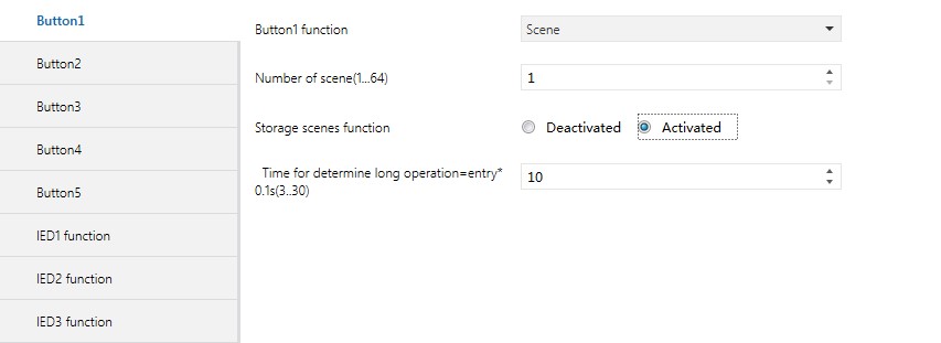 选项为“ Activated ” , 开关长按操作保存场景,短按操作调用场景,场景的调用和保存由同一个 1byte 的通讯对象控制。