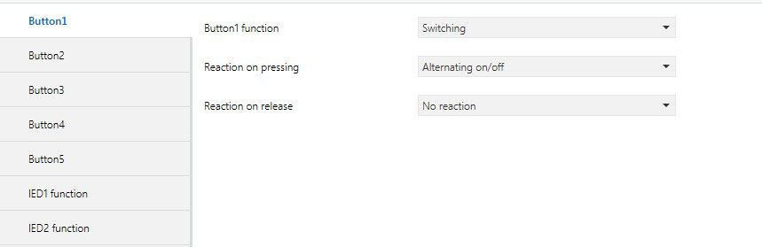 该参数用于定义按键按下和松开时的动作,可发送一个 1bit 的“开或关”的报文。这个报文可以是一个“ ON ”报文,一个“ OFF ”报文。可选项:
