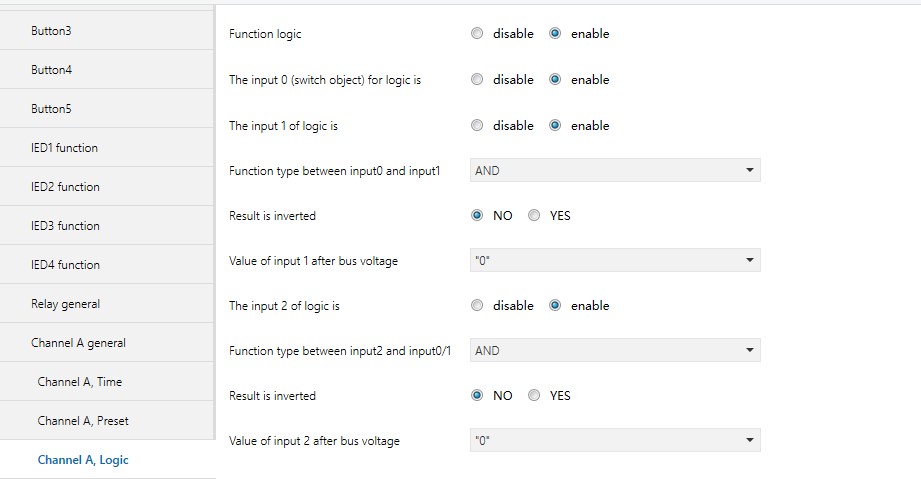 此参数使能逻辑运算的通讯对象“Input 1 of logic”,“Input 2 of logic”。