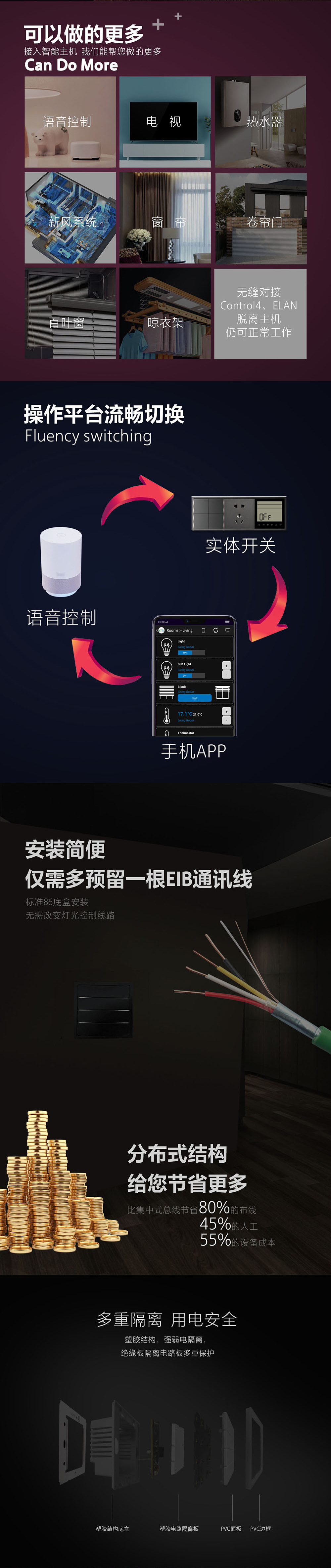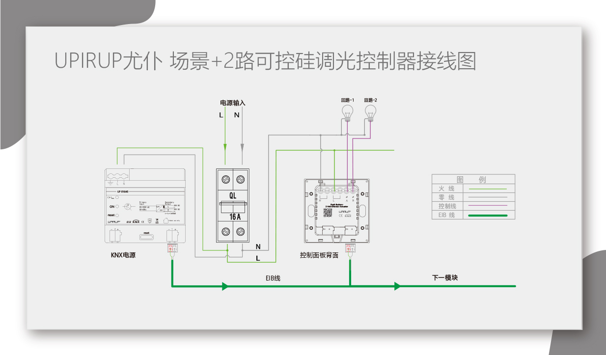 UPIRUP尤仆 KNX-PVC8按键2路可控硅调光面板