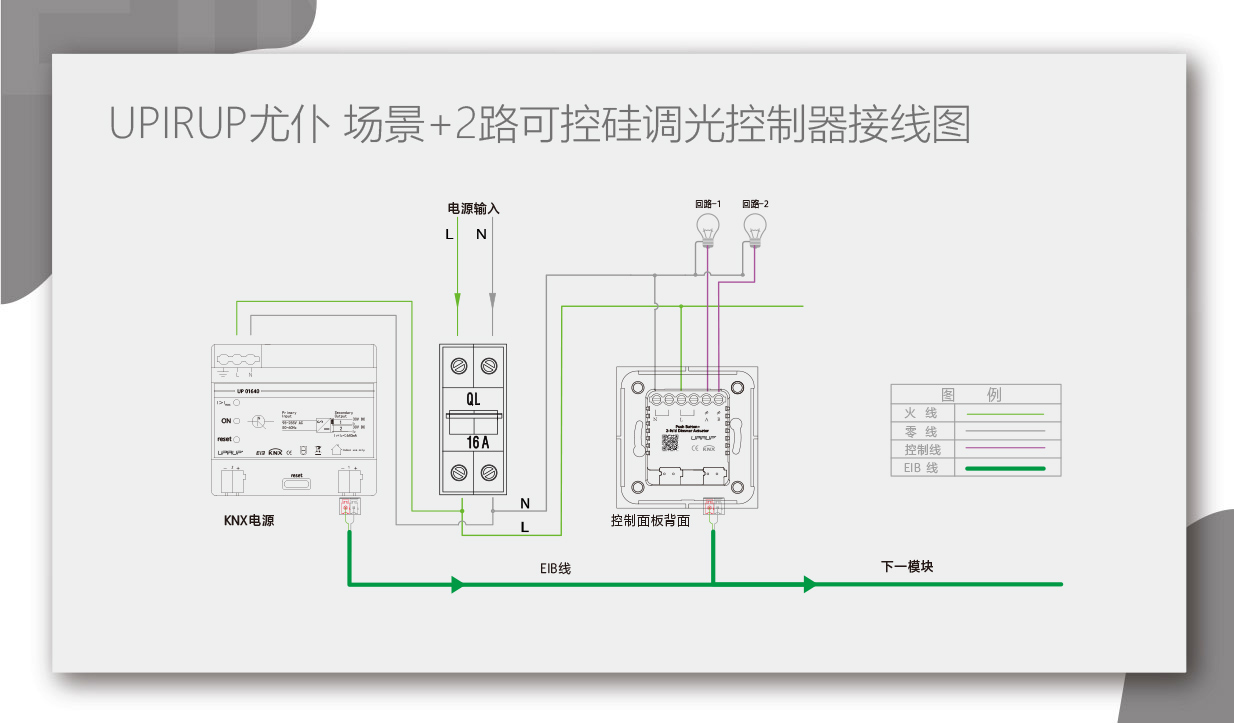 UPIRUP尤仆 KNX金属触摸2路可控硅调光面板