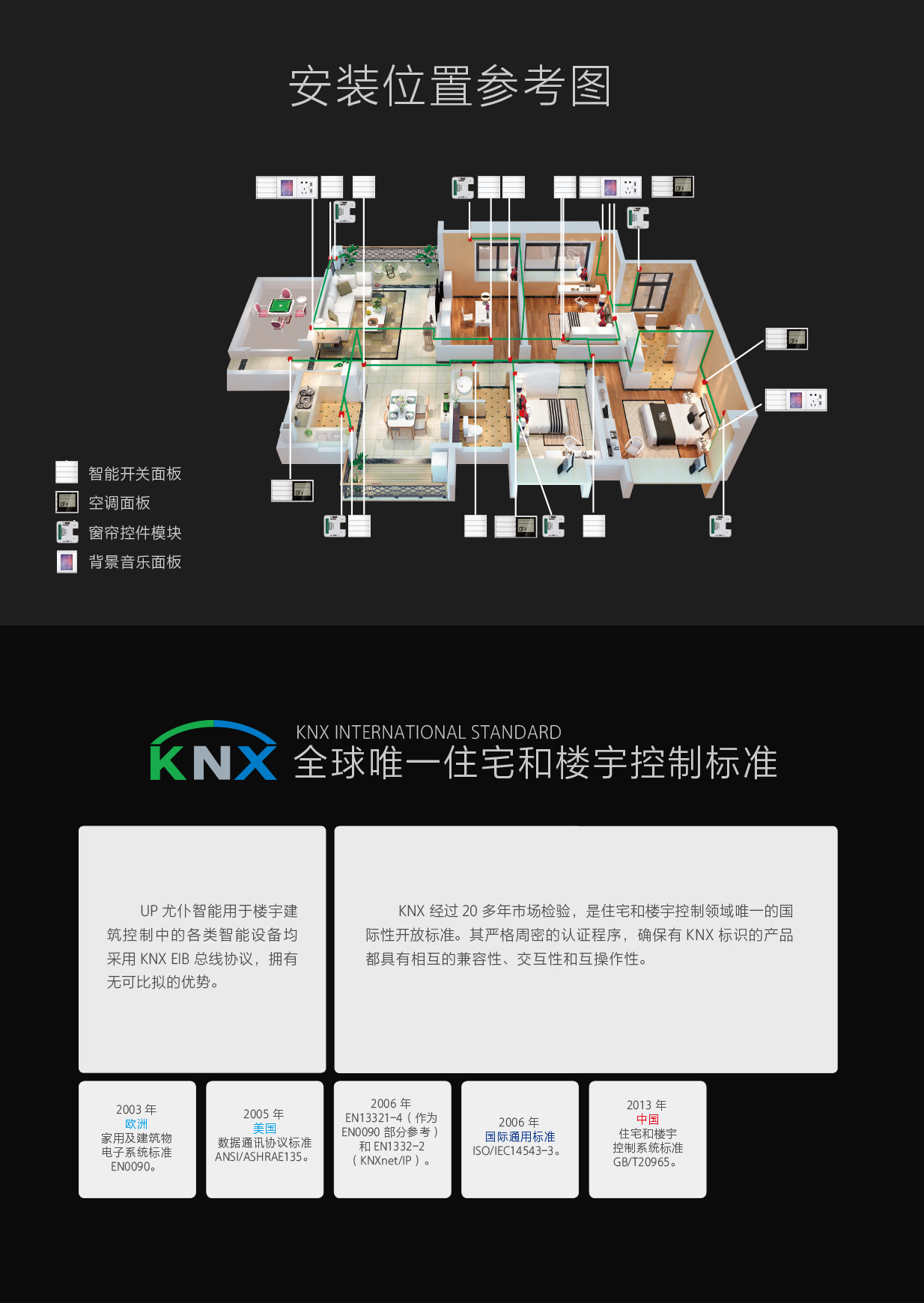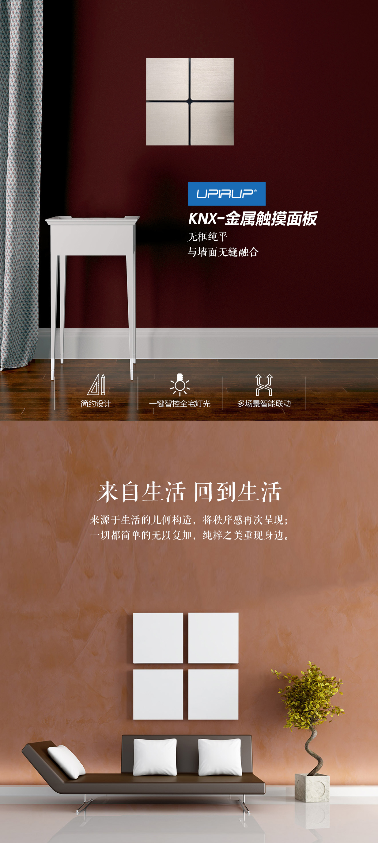 UPIRUP尤仆 KNX金属触摸3路继电器面板