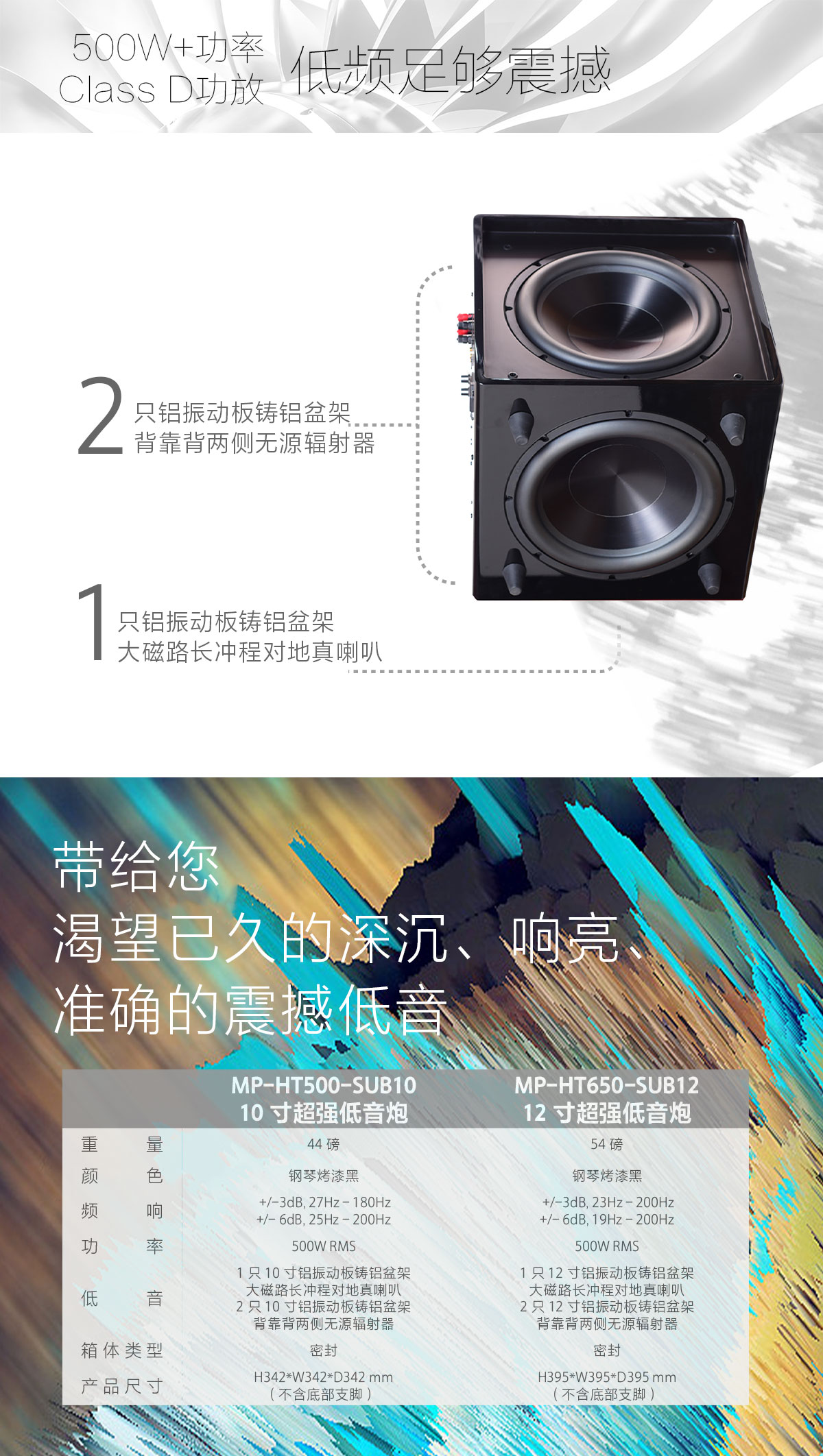 美国MP Loudspeaker超强低音炮MP-HT500-SUB10 MP-HT-650-SUB12